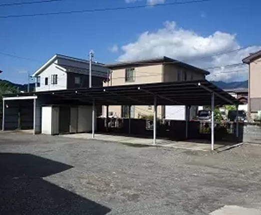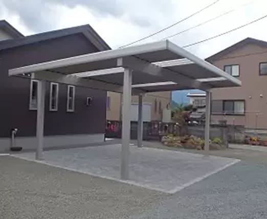 駐車場工事。アプローチ工事を行い、サイクルポートと物置を設置しました。