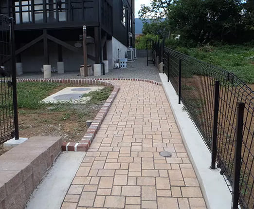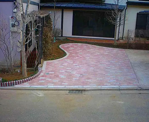 エントランス、ガレージ前をインターロッキングで施工いたしました。