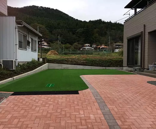 都留市 鈴木様邸(駐車場、インターロッキング、人工芝工事)