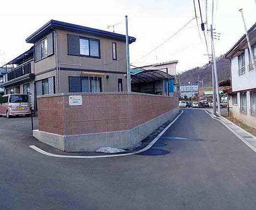 市道拡幅後に擁壁の上にブロック塀の設置を行いました。