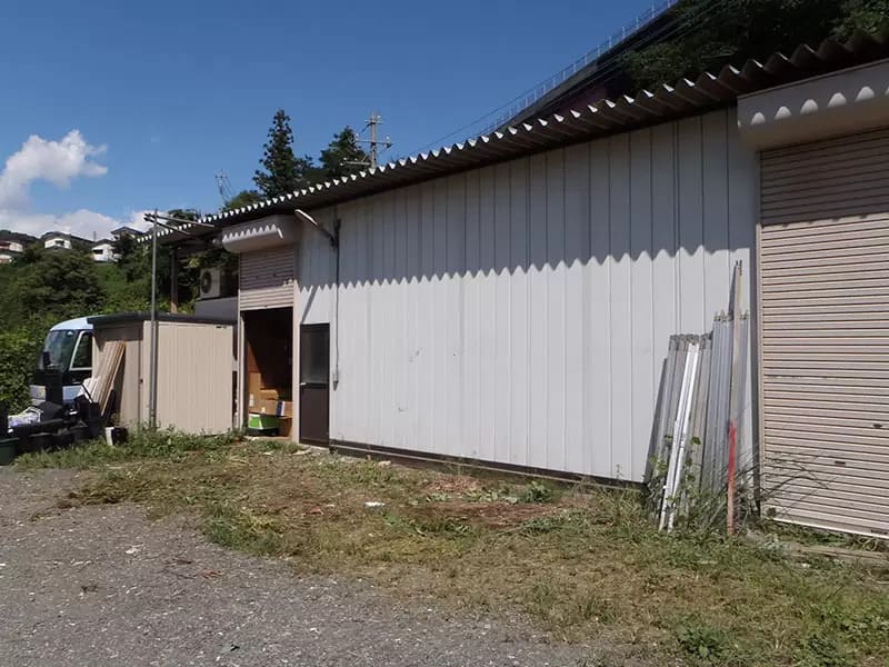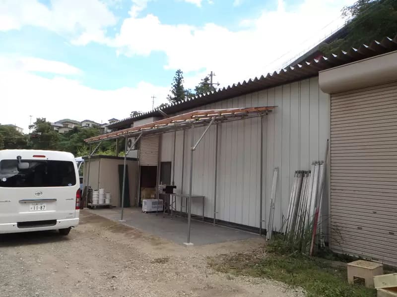 出入り口部分の側溝にグレーチングを設置し、コンクリート舗装とインターロッキングで奥の倉庫前まで施工いたしました。