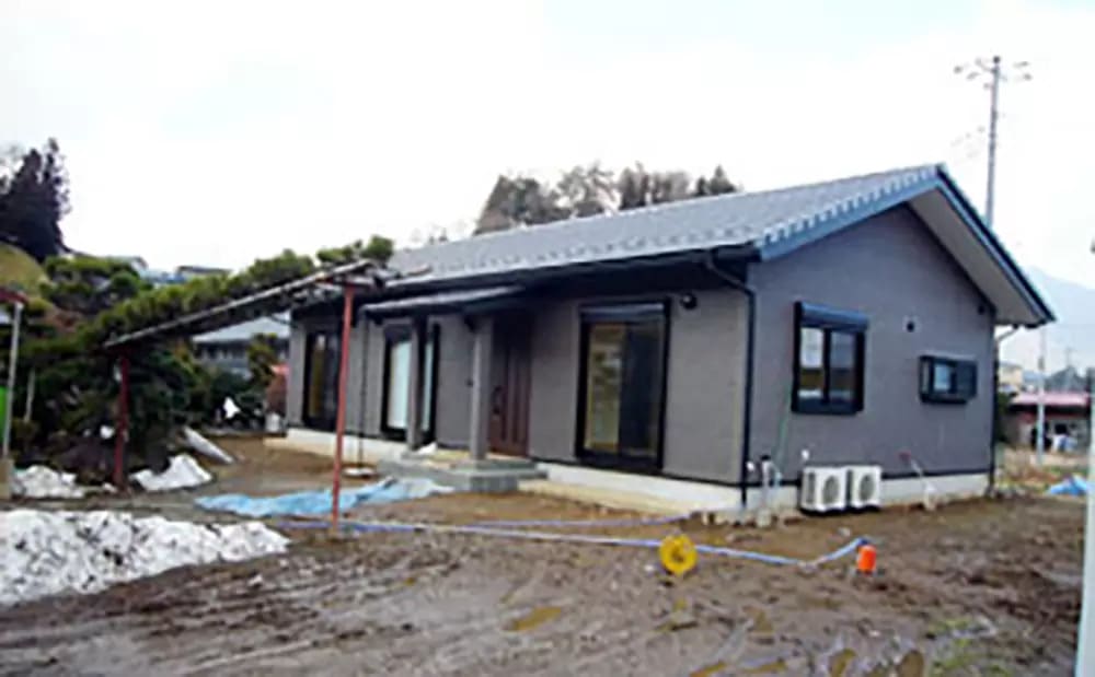 道路から3mほど下がった所の田畑を、コンクリートブロック積による土留め擁壁で土地全体を上げて造成しました。