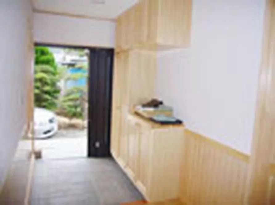 既設ブロック積みをくり抜いて土留と駐車場、玄関までのアプローチ、既設の階段保護のための屋根、庭には人工芝を設置。 門扉、フェンスなども設置しました。