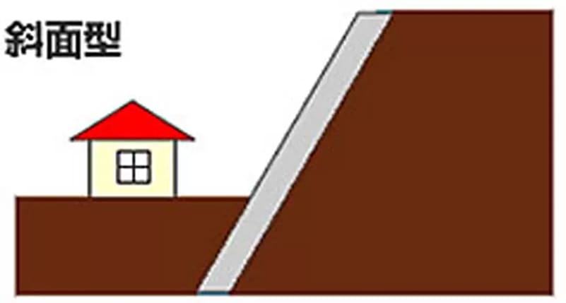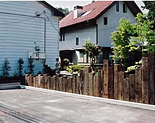 斜面型の擁壁で地盤を支えます。工事範囲が狭いのでコストを抑えられるのがメリットです。