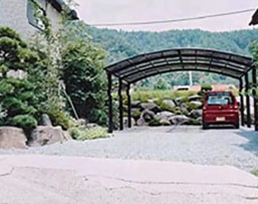 スペースを有効利用するために、庭の中にカーポートを設置。お庭は和風ですが、特に違和感もなくご利用いただいているということです。