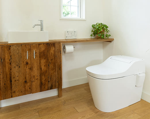 トイレのリフォームと言えば、ウォシュレットへの変更は当たり前ですが、車椅子の方や高齢者の方でも使いやすいような、バリアフリー化の施工も行っています。
